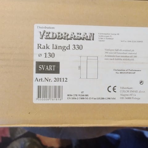 NVI 2000 kaminrör Ø125 halvisolerat svart.