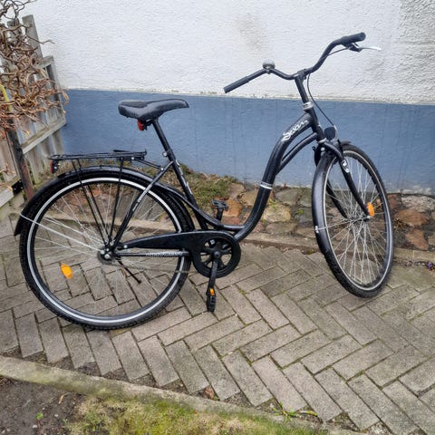 Aspenäs Sjösala. Mycket bra skick. Förvarad inomhus. Ingen rost. Skön att cykla på. Pakethållare och hjulskydd. Cykelkorg finns om man vill ha med. Cykelstöd.