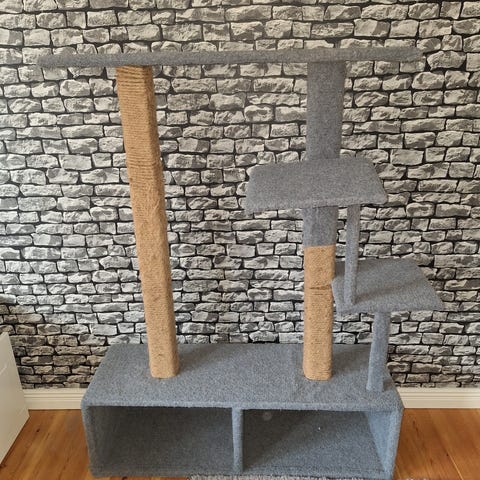 Vår katt Lucy har gått bort och vi säljer därför hennes ”Buggin Out Puzzle & Play” som är en aktiveringsleksak samt hennes klösstolpe.