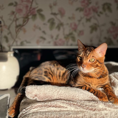 Bengal hane renrasig Han växerupp i familjen med hundar och katter .