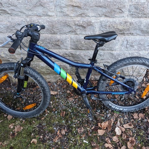 Scott barncykel med 24" hjul i orange färg. 8 växlar. Ok skick med några stenskott.