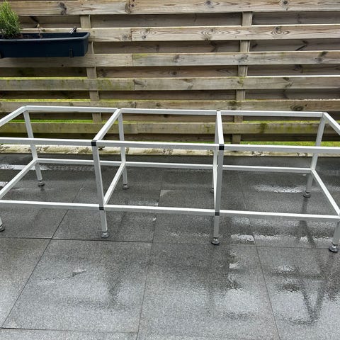 Säljer en aluställning, ställbara fötter med följande mått 150x40x70cm - LxBxH.