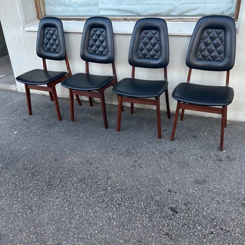 Vintage matstolar 4 st i valnöt troligen modell ”Vindö” som är formgiven av Svante Skogh på 1960-talet.