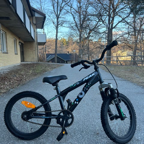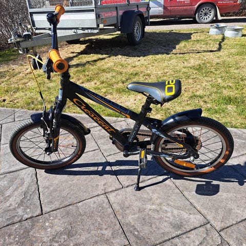 Crescent barncykel med 16" hjul i svart/gul färg. Utrustad med fotbroms bak och handbroms fram, kedjeskydd, skärmar och reflexer. Passar som cykel för barn som behöver en mindre cykelstorlek med 16-tums hjul för vardagscykling och lek.