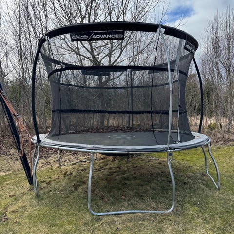 Studsmatta från Trampolinspecialisten med liknande mått kostar 12.990kr.