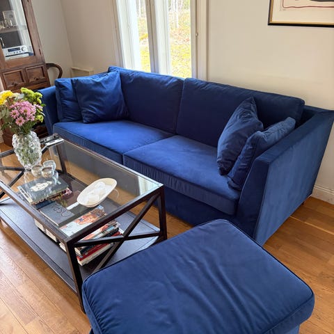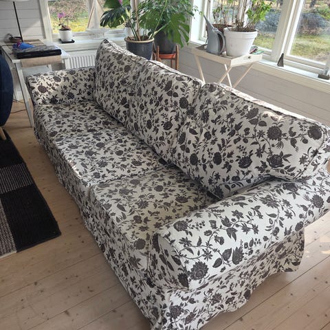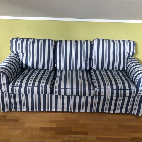 hel och ren IKEA Stockholm soffa med tre sittplatser, ej nersutten, överdrag från BEMZ, överdraget är solblekt på något ställe, överdraget går att tvätta hemma i maskinen, soffan hämtas upp enligt överenskommelse