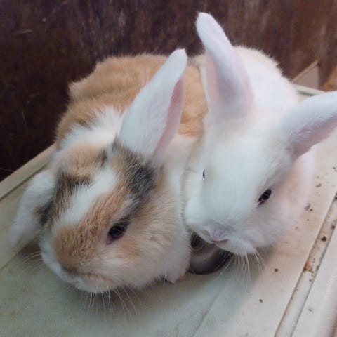 Mycket trevliga kaniner som hanteras och är vana vid hund och katt.
