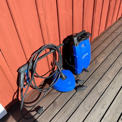 Högtryckstvätt med tillbehör, skick enligt bilderna, funkar. Enbart avhämtning i Täby. Betalas via Swish.