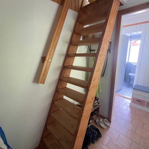Fyra trappsteg plus topplatta. Proffsivalitet från Laggo. 125 cm hög 80 bred topplatta.
