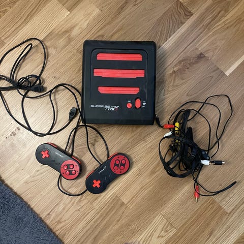 Mini Game Anniversary Edition spelkonsol i kompakt format. Konsolen är grå med mörkare detaljer och ansluts via kabel. Två klassiska handkontroller med styrkors och knappar ingår. Enheten är avsedd för TV-anslutning och levereras med originalförpackning enligt bilderna. Lämplig för den som vill spela inbyggda retroinspirerade TV-spel hemma. 161 inbyggda spel.