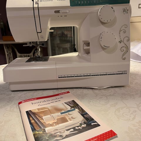Husqvarna Viking symaskin. Maskinen har flera inställbara sömmar.
