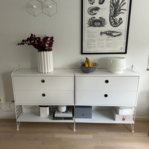 Paketet innehåller två hyllplan med tillhörande beslag enligt bilderna. Hyllplanen är helt nya och aldrig använda.