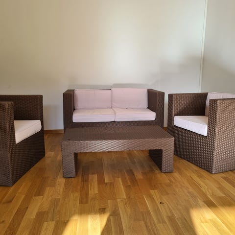 Soffan är lite skådat på sidan men man kan sitta ändå bra på den.