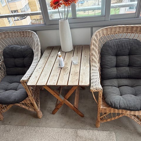 Utemöbelset rotting soffa fåtöljer bord dynor förvaring