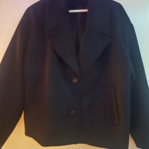 Pull&Bear kappa för dam i storlek S. Modellen är en svart, knälång ytterkappa med enkelknäppning framtill och klassisk krage. Materialet är polyester. Kappan har sidofickor och är fodrad, lämplig som ytterplagg under svalare årstider.