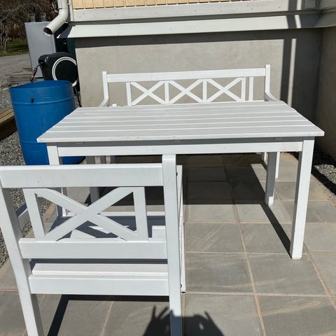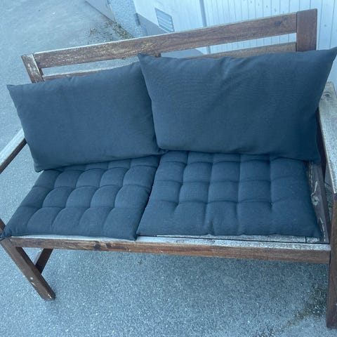 Denna bänk passar även perfekt på uteplatsen.