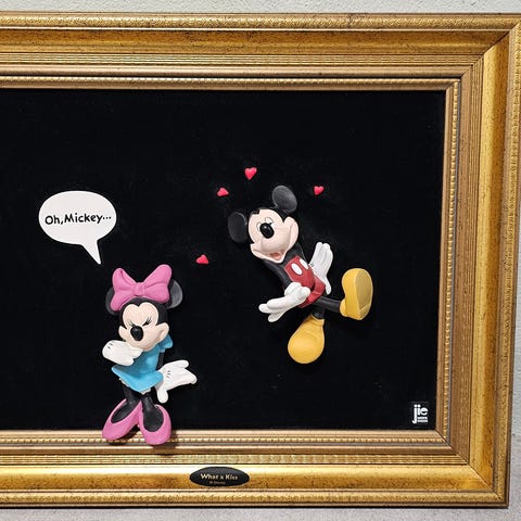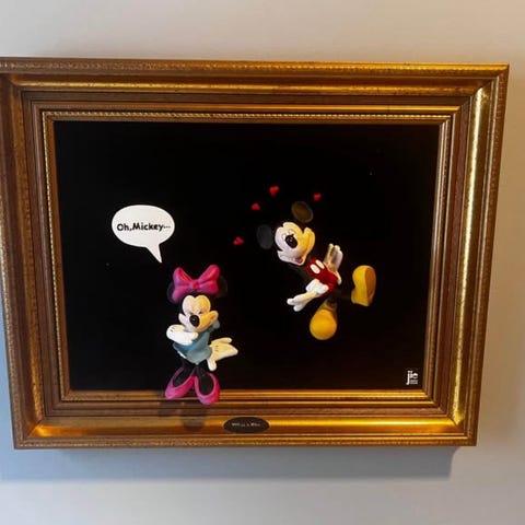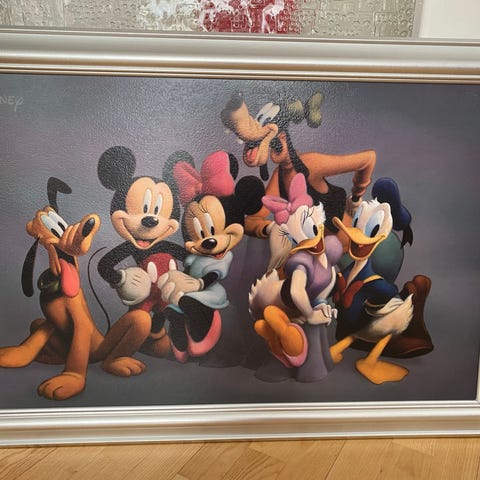 Säljer en charmig handmålad tavla med motiv av Musse Pigg. Tavlan köptes i en liten gammaldags/antik butik i Frankrike och har en fin, klassisk känsla. Motivet är målat för hand, vilket gör varje detalj unik och ger tavlan mer karaktär än vanliga tryck.