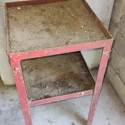 Två rejäla, ihopfällbara arbetsbänkar. Ytorna behöver nog slipas/bytas men stommarna är solida. Tunga som tusan, Lyfthjälp finns.
