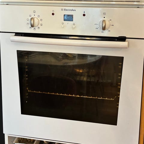 Vi har använt ugnen flitigt under fem månader då vi renoverat vårt kök. Den har troligtvis inte varit använd innan dess. Ugnen är rengjord, men har lite sotfläckar kvar som jag inte fick bort. Den fungerar utmärkt och effektivt.