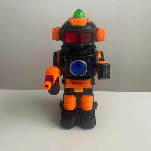 Denna leksak är ett fordon från serien "Captain Simian och Space Monkeys". Den är en del av en kollektion baserad på den animerade science fiction-serien från 1990-talet. Leksaken föreställer ett rymdskepp med en röd låga på baksidan. Det är ett vintage-samlarobjekt för fans av serien.