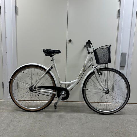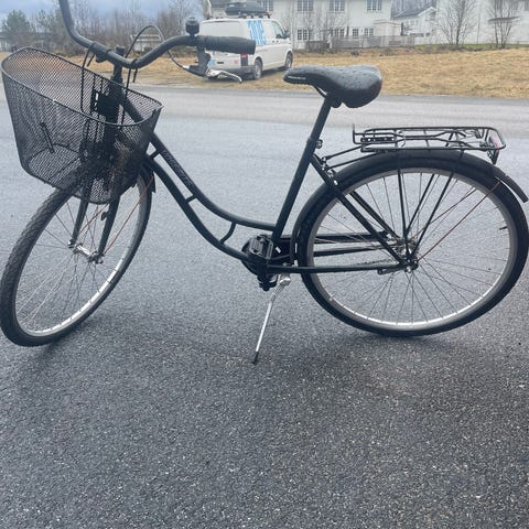Säljer min jättefina svarta damcykel, den går som en klocka och är jättelätt att åka på och ta sig fram med på vägarna. Cykeln är utrustad med korg, tre växlar, frambroms bakbroms ringlocka, stödben och pakethållare.