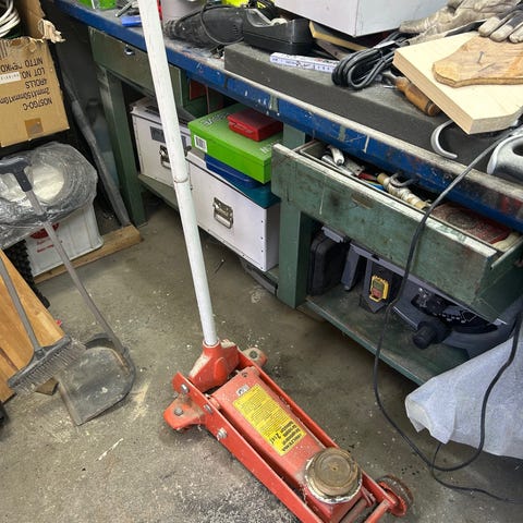Compac domkraft med lyftkapacitet på 5 ton. Domkraften är cirka 145 cm lång och har en maxhöjd på cirka 58 cm. Passar för lyft av fordon eller annan utrustning inom angiven kapacitet. Konstruktion i metall med hjul för förflyttning på plant underlag.
