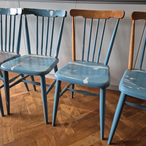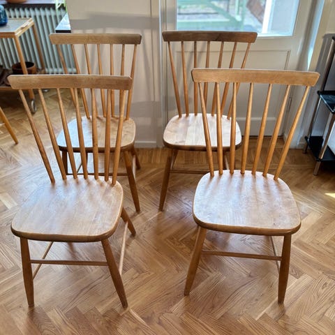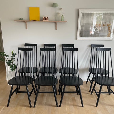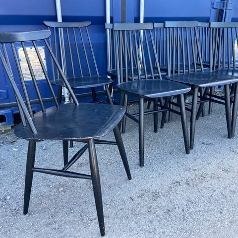 Fanett 55T pinnstolar i design av Ilmari Tapiovaara för Edsbyverken. Omlimmade / helt stadiga och målade i matt svart. Klassiker från 60-talet i fint skick!