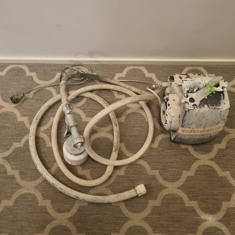 2st Hard Head wallpaper stripper / tapetborttagare med ånga. Enheten består av ångcentral med vattentank, ansluten slang och ångplatta för applicering mot vägg. Avsedd för borttagning av tapeter och liknande väggbeklädnader. Ansluts till eluttag och fylls med vatten enligt anvisningar på apparaten. Lämplig för användning vid renovering och omtapetsering i hem och andra inomhusmiljöer.
