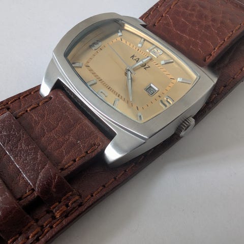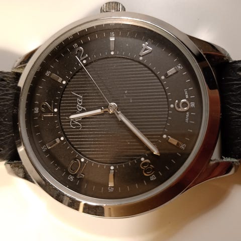 Axcent Jokkmokk herrklocka med rektangulärt, lätt välvt boett i metall och svart urtavla. Stora vita siffror och visare för tydlig avläsning samt datumfönster vid klockan tre. Klockan har mörkt läderarmband med struktur och klassiskt spänne. Passar för vardag och enklare dressat bruk. Nytt batteri behövs.