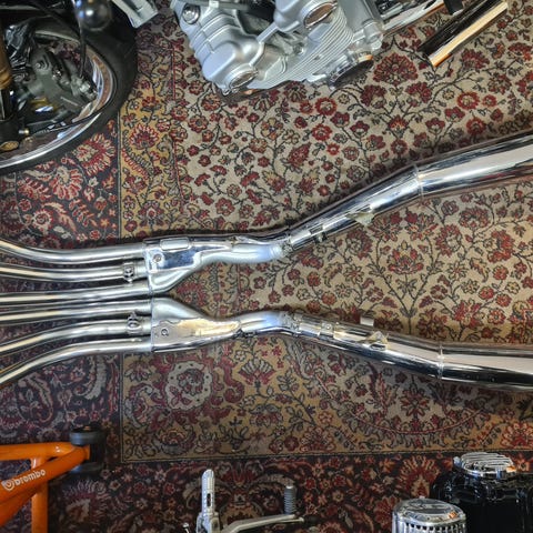 ORIGINAL AVGASSYSTEM 2014 STREET GLIDE CHROME VÄRMESKÖLDAR FRAM SAKNAR LJUDDÄMPARE. 3,000KR