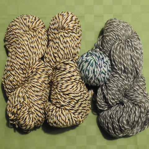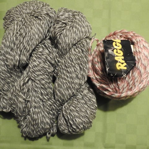 Garn i härvor i blandade färger, inklusive grått, beige, ljusgrått och grönt. Passar för stickning och virkning av exempelvis tröjor, mössor, halsdukar eller andra handarbetsprojekt där tjockare garn önskas. Material och exakt grovlek framgår inte av informationen och kan variera mellan härvorna.