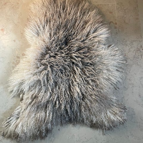 Hjälper min pappa att sälja får och lammskinn. Det är Gotlandsfår som är uppfödda på Öland.