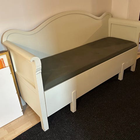 Kökssoffa från 1940-talet som min pappa sovit i som barn. Stort affektionsvärde men får inte längre plats då vi behöver renovera köket.