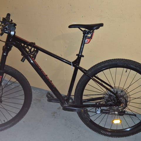 Bergamont mountainbike för unisex med ramstorlek M och 29hjul. Cykeln har framdämpad gaffel, skivbromsar och ett rakt styre som ger en upprätt och kontrollerad körställning. Utrustad med grovmönstrade däck anpassade för både grus och lättare terräng. Passar för vardagscykling, motionskörning och enklare stigcykling.