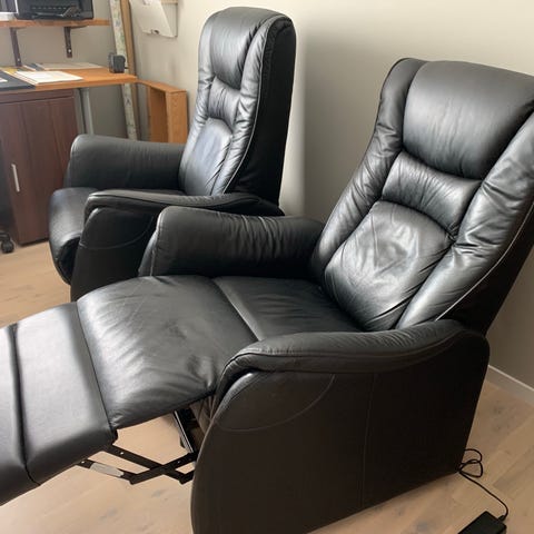 Säljer min två-sitsiga elektriska reclinersoffa då jag ska flytta och denna ej passar i min nya lägenhet. Material är konstläder och färg är grå. Finns mer att läsa här: