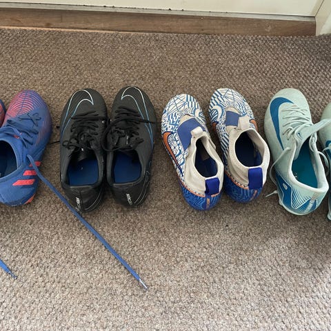 Tre par fotbollsskor till konstgräs.