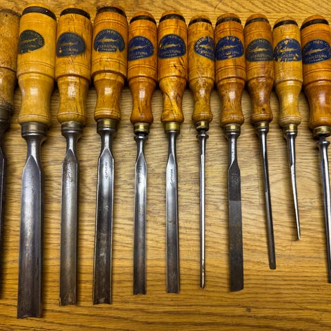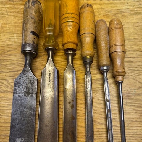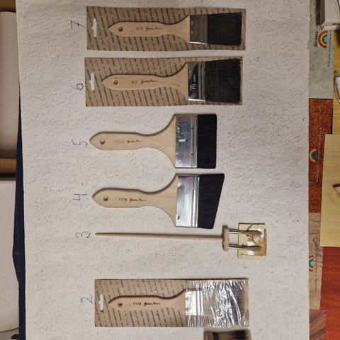 Flera olika typer av penslar för ådring och marmorering
