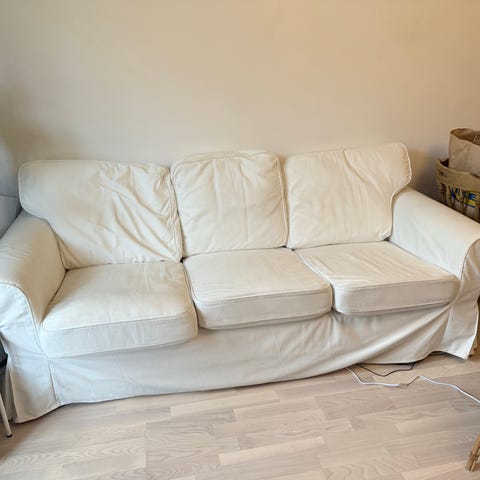 Säljer en välbevarad soffa från Ikea. Ljusbeige klädsel, helt ny se näst sista bilden för rätt färg. Ena benet är löst men inget som påverkar funktionen. Den är stadig, benet hoppar endast ut när man lyfter på soffan. Utöver det riktigt bra skick.