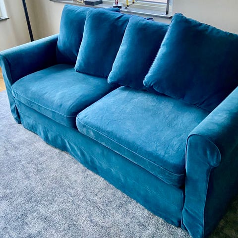 Bäddsoffa från IKEA som stått i vårt sommarhus. Vi köpte den för tre år sen och den är aldrig använd (sova i). Två nya fina madrasser.