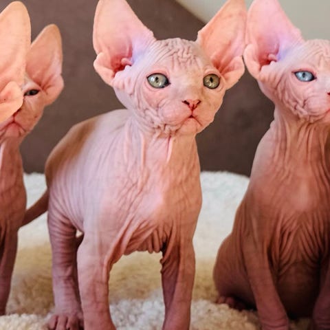 Vacker röd Sphynxhane, Kiwi söker sitt framtida hem