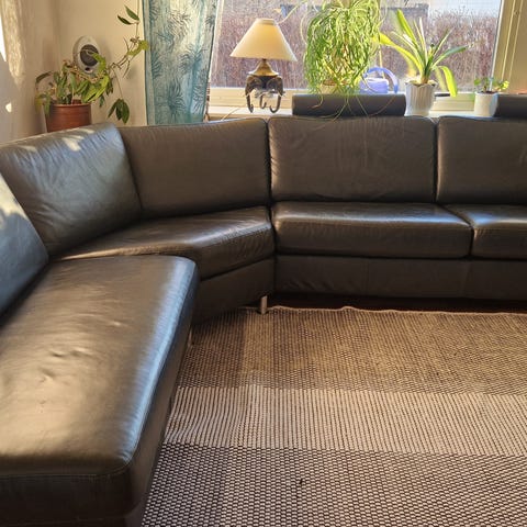 Svart skinnsoffa