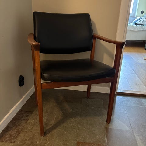 Säljer en stilren och tidlös fåtölj designad av Karl-Erik Ekselius för JOC Vetlanda, tillverkad i Sverige under 50/60-talet. Teak och läder i bra vintage-skick. Stolen är helt stabil och mycket bekväm.