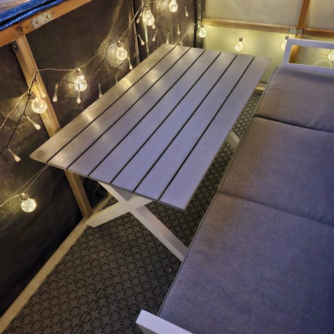 Mått bord: höjd 45cm, bredd 61cm, längd 121cm.