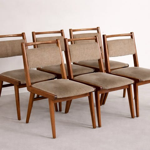Alla delarna i massiv teak. Enkla att klä om och stoppning som fortfarande är mkt bra.