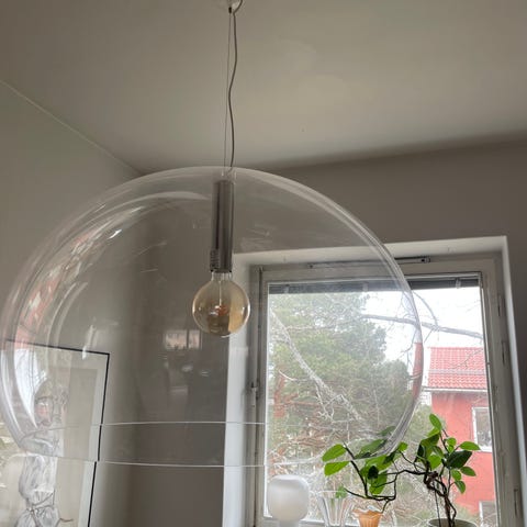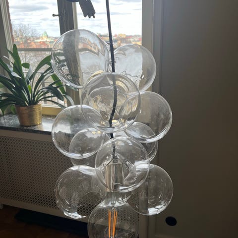 Jättefin vit taklampa med glaskulor, Tage från CO Bankeryd.