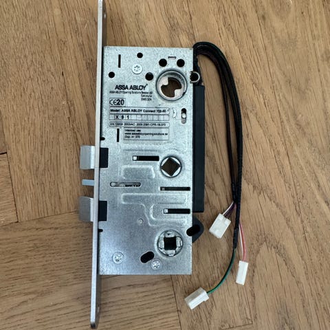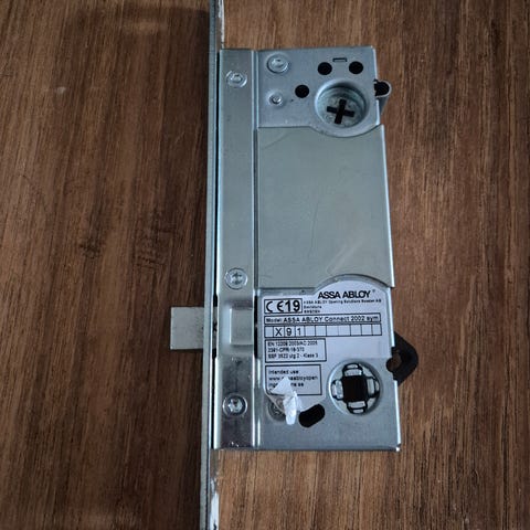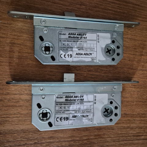Assa Abloy låshus med tillhörande slutbleck i metall. Modell 8765. Helt nytt säljes pga använder annan typ.