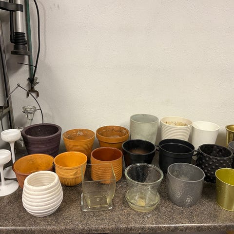 Set med två blå krukor i keramik. Krukorna har konisk form med något vidare öppning upptill. Passar för plantering av växter både inomhus och utomhus, beroende på behov och förutsättningar. Storleken skiljer sig mellan krukorna, där den ena är större och den andra mindre, vilket gör dem användbara för olika typer av växter eller som kompletterande dekoration.