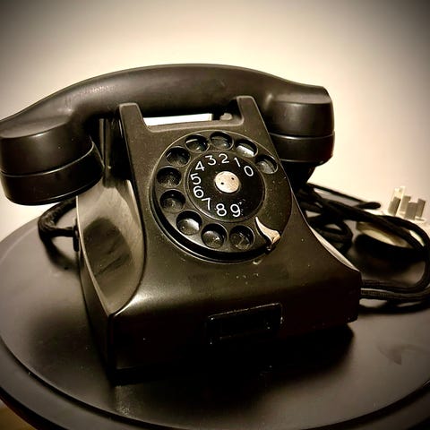 LM Ericsson bordstelefon med nummerskiva grå