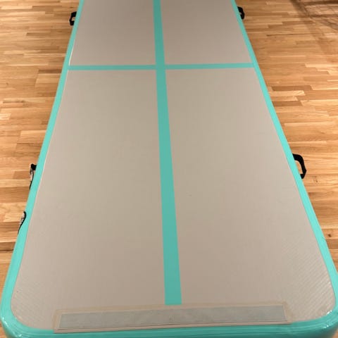 AirTrack Nordic -matta i lila med ljus ovansida. Mattan är uppblåsbar och har bärhandtag på sidorna för enkel förflyttning. Medföljer elektrisk pump med slang samt förvaringsväska med AirTrack Nordic-tryck. Lämplig för gymnastik, träning och lek inomhus och utomhus.