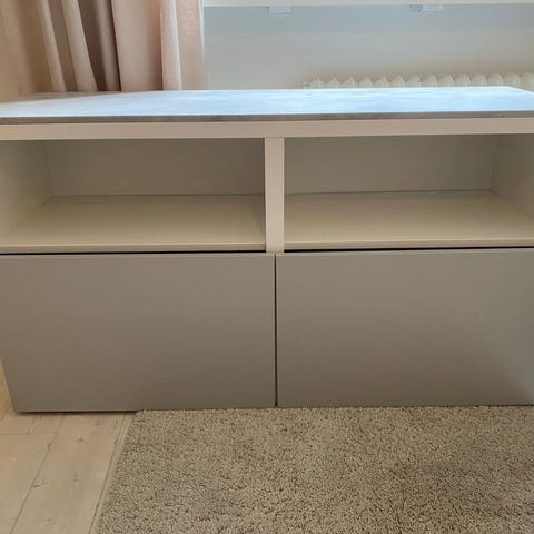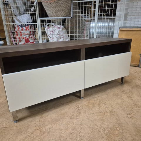 Tv-bänk Bestå från Ikea. Lådinsats samt hyllplan finns med men ej monterat i dagsläget.